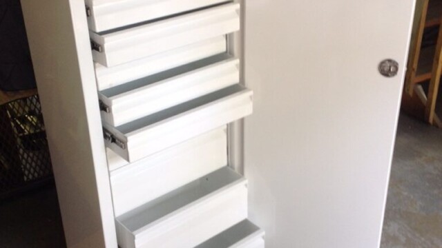 It was necessary for A&R Marine to cover existing fixed pumps and components while adding work counter space, still allowing for ease of serviceability. Deep drawer space was required for power tools and large boxes.