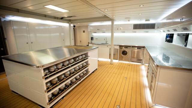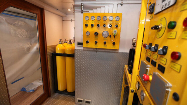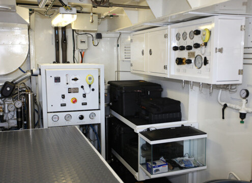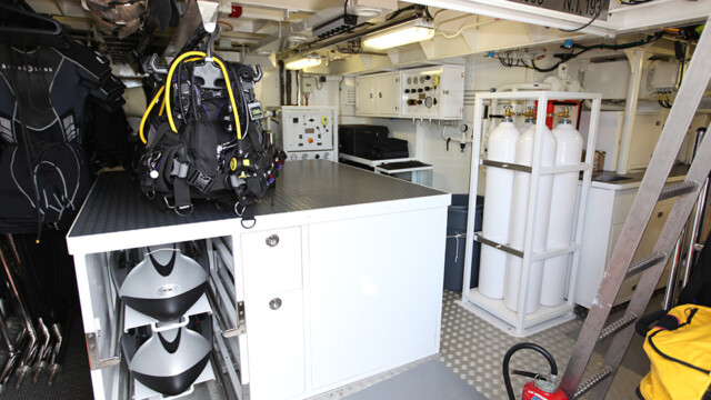 Full dive locker with laboratory facilities. Nitrox Solutions and Moondog Dive Outfitters also installed an air/nitrox/oxygen system with cascade storage.