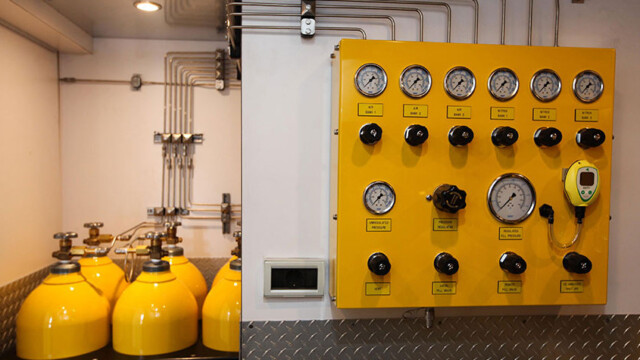 Due to the restricted space available to load the equipment Nitrox Solutions built the system in modules to allow for an easier load of the equipment. A&R Marine supplied the fabrication of the Cascade mounts and the base for the system